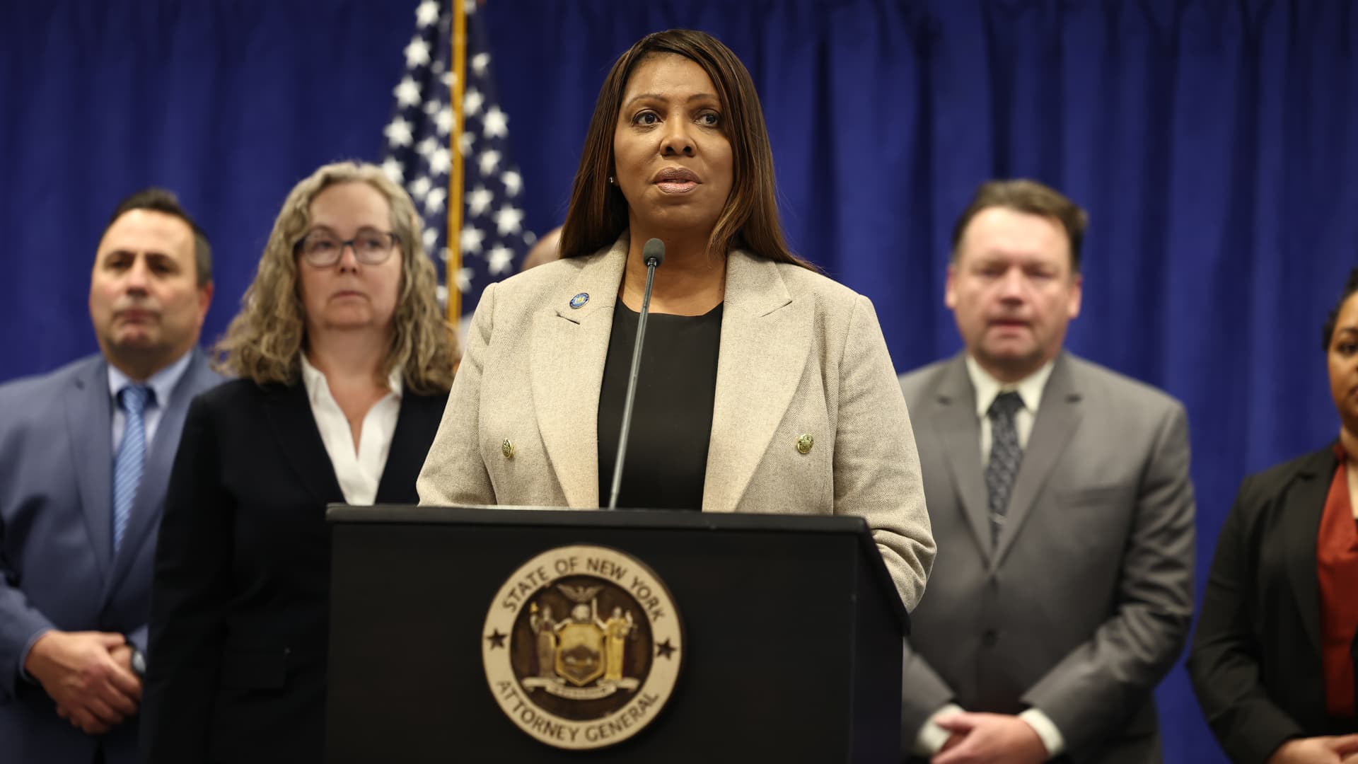 NY Attorney General Letitia James speaks during a press conference at the offices of the Attorney General on January 08, 2025 in New York City. Michael M. Santiago | Getty Images New York Attorney General Letitia James on Thursday announced a bill to protect the state’s consumers and small businesses from scams and deceptive practices […]